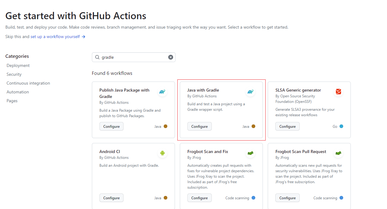 3. 생성된 gradle.yml 파일을 수정합니다.